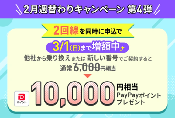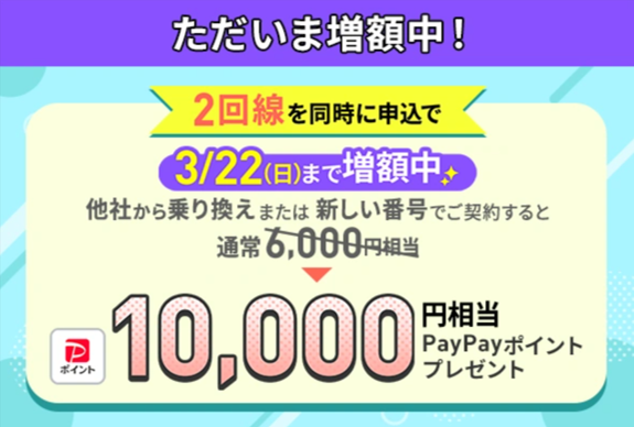 2回線まとめて申し込みでPayPayポイントプレゼントキャンペーン