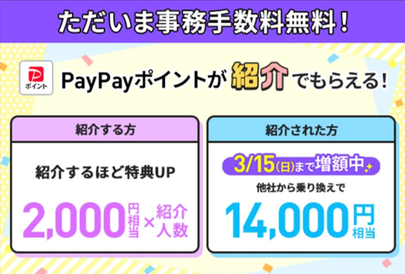紹介された方は、他社から乗り換えなら10,000円相当、新しい番号で契約なら7,000円相当のPayPayポイントをプレゼント!
