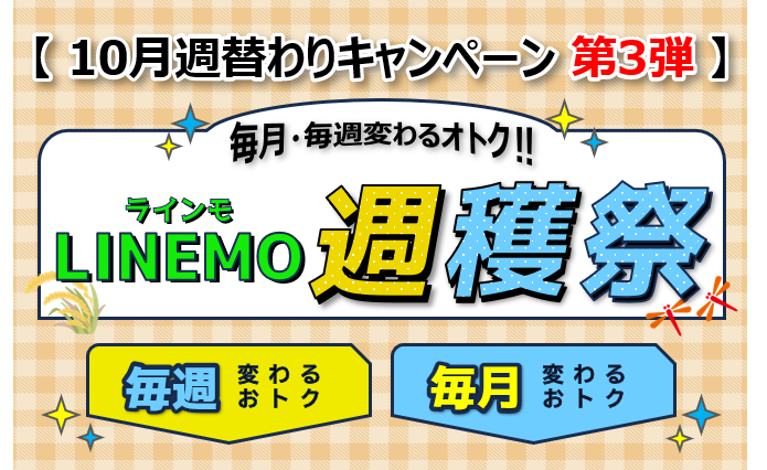 ラインモが毎月週替わりで開催している『週穫祭キャンペーン』の最新情報をご紹介いたします。