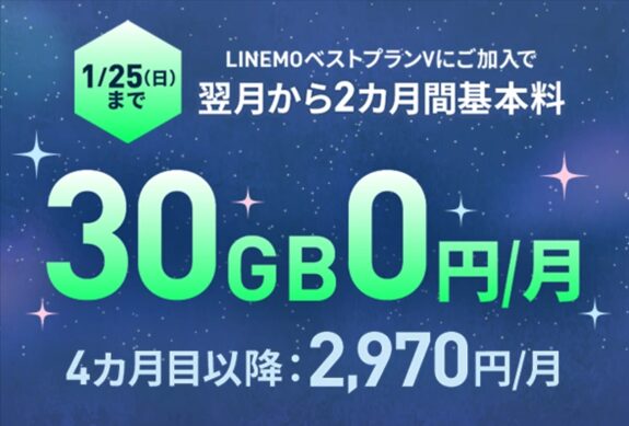 LINEMOベストプランV 基本料2カ月0円キャンペーン
