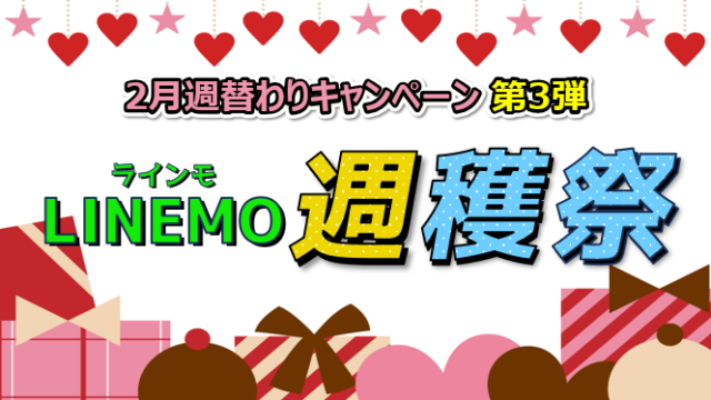 キャンペーン情報 【2月週替わりキャンペーン】今週のLINEMO週穫祭キャンペーンまとめ 2026年2月9日 blog ラインモが毎月週替わりで開催している『週穫祭キャンペーン』の最新情報をご紹介いたします。 今週は「2月週替わりキャンペーン第3弾!」開 …