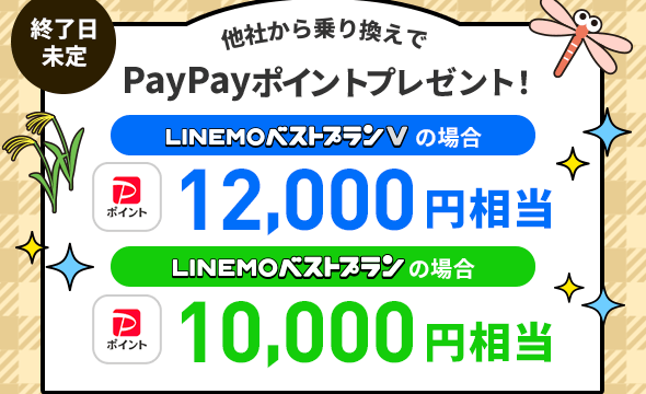キャンペーン情報 ラインモ(LINEMO)他社から乗り換えでPayPayポイントプレゼント! 2025年5月8日 blog ラインモ(LINEMO)のキャンペーン最新情報!無料期間はあるの? 今回新たに始まったキャンペーンは、他社からラインモへお乗り換えをされた方限定の特典となっています。 どのような内容になっているのか、適 …